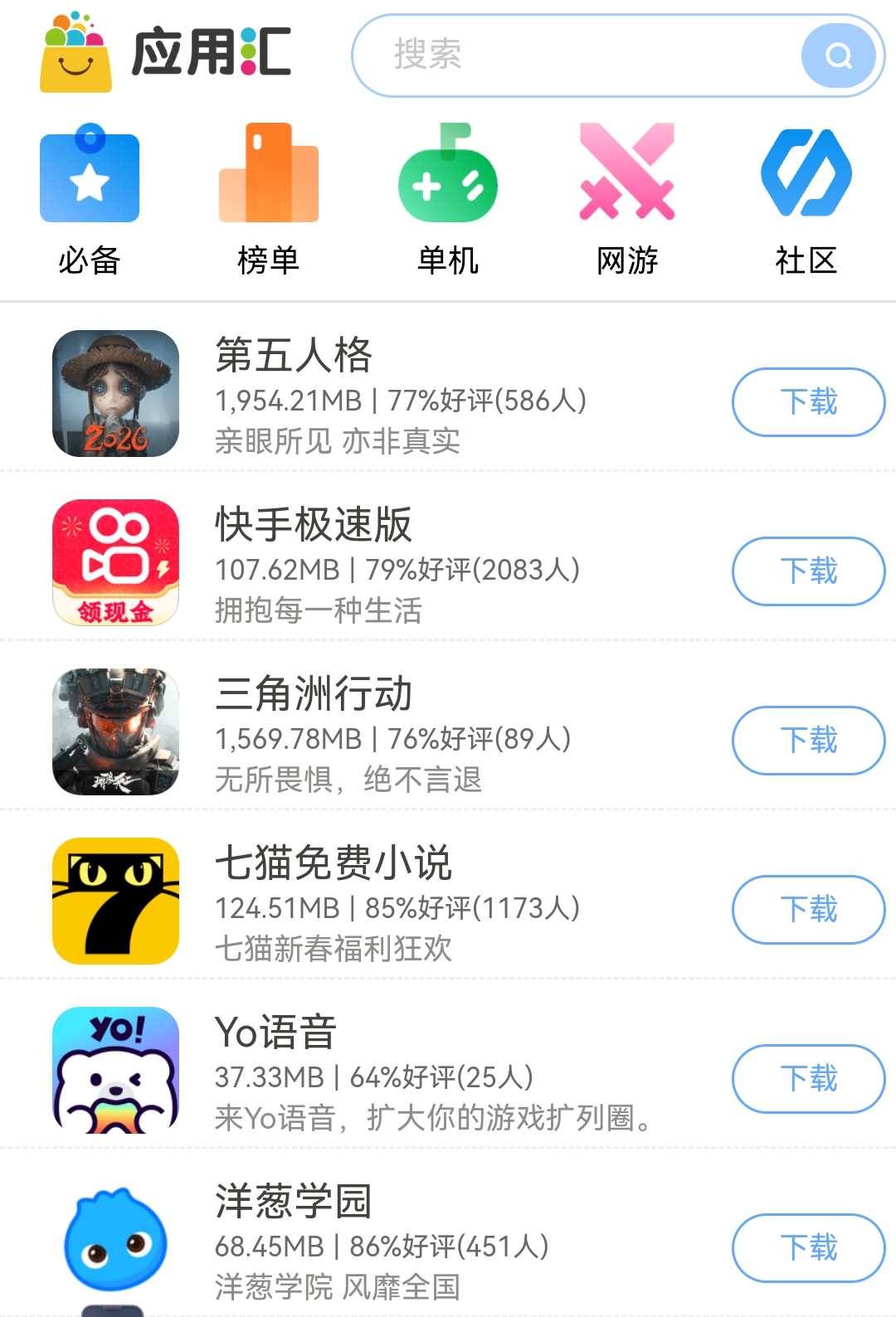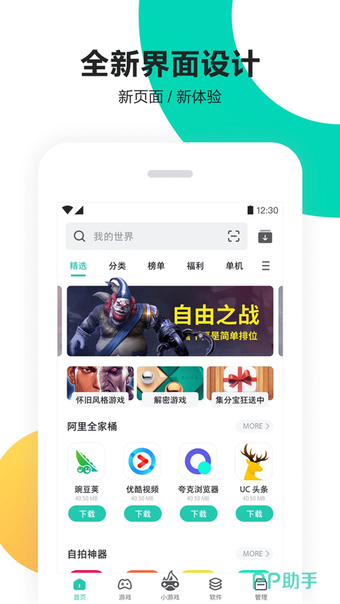 界面设计清爽直观的综合型安卓管理工具,兼顾应用与游戏分发。针对新机用户推出“装机必备”功能,支持按场景(如办公、娱乐、学习)一键部署高频应用,大幅简化初始配置流程。此外集成轻量级网页小游戏入口,无需安装即可即点即玩,提升碎片时间利用率。