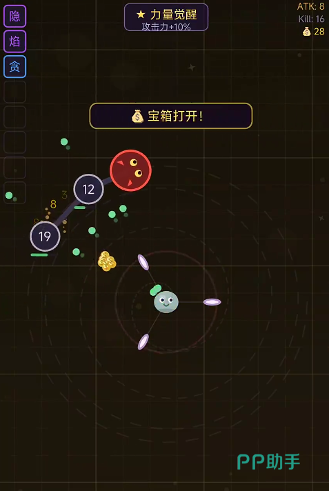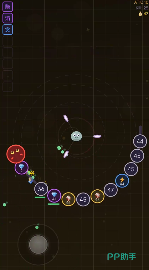 本作采用暗黑风格视觉设计,核心玩法围绕Roguelike机制展开。开局角色为初始形态的微型史莱姆,基础属性偏低,行动范围有限。建议新手阶段优先清理低阶敌人,通过吞噬或击败方式积累经验值与金币资源,快速完成首次升级。每次升级不仅提升基础战力,还可解锁全新技能,并支持自由搭配组合,构建个性化战斗流派。