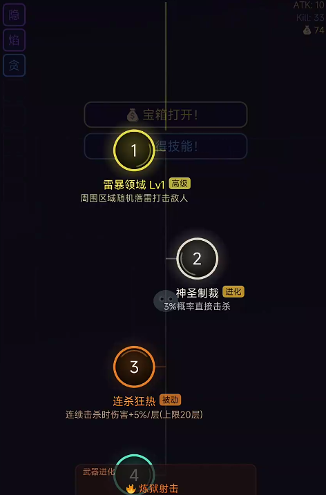 技能系统支持多阶进化路径,例如“烈焰强化”可直接提升攻击力,“星辰之焰”则进一步衍生为范围持续灼烧效果。此外,部分精英敌人被击败后会掉落宝石类资源,这类掉落物具备较高经济价值,建议在推进过程中优先锁定并清除,以加速原始资本积累节奏。