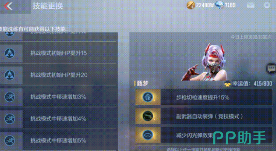 目前副武器自动装弹,只有甄梦才有,在打完副武器子弹之后,可以直接切主武器,五秒后,副武器会自动装好,不用手动换弹,打起来少了一个被抓破绽的机会。另外她自带免疫己方手雷伤害,和高处掉落不受伤害,洗炼上减少闪光弹效果就凑齐三防了,竞技模式里比较抗造。移速提升技能对抢点有不小的帮助,开局一秒的移速加成,敌人刚反应过来,可能你已经到点位上了。生化和挑战模式里,移速提升也能让保命容易一点。