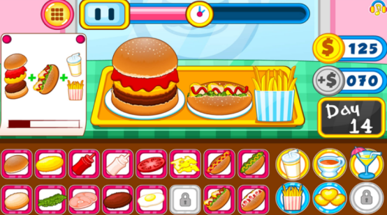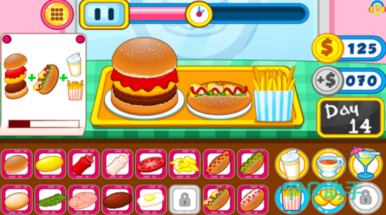 开局后即将开设自己的汉堡快餐,需要为各种形形色色的顾客提供汉堡的特色美食,还可将自己的产业伸向全世界。制作美食同时必须要讲究新鲜的食材,比如有蔬菜或者是西红柿等等,确保产品的质量。正式营业之后,还要及时处理客户的订单,以很快的速度为其制作美食。
