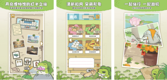 官方正版授权所创作,采用唯美的中国风画面所展现。其中的小青蛙需要在我国的各个地区逐渐探索并逐渐旅行,通过收集三叶草的方式,就能为其中的小青蛙准备大量的便当或者是道具,可走遍我国著名的名胜古迹。在每次旅行时都可体验到当地的特色美食或者是各种明信片等等,可将当地的地方特产全部带回到自己的家中,在放置的模式之下,也可为其准备食物。