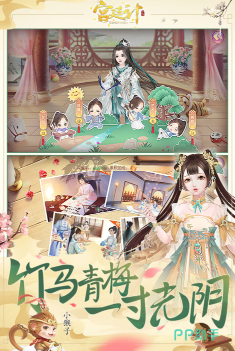 游戏让你置身在皇宫,你可以逛一逛,将各种金碧辉煌的奇景看个过瘾。游戏里,你可以遇见或强势或呆萌或柔情的他,绝对有你喜欢的男生类型。游戏里的漂亮裙子多,囊括了欧美风、唐风、英伦风等类型,你可以穿的美美的去约会。游戏里,你可以求送子观音给你赐下麟儿,悉心培养他成材成器。