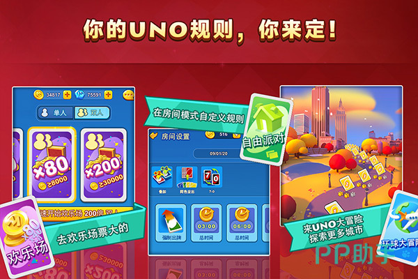 《一起优诺》作为一款出类拔萃的桌游卡牌,在规则机制上是将实体扑克牌的玩法元素进行了嵌入,并推出了多种类型个性独具的主题纸牌,更是围绕着全球国家和地区,上线了令人悸动的纸牌世界杯对战玩法,角色头像框、纸牌的背面立绘各种不菲的赛事奖励,在组队进行博弈的同时,同队友之间的手牌信息可以共享。