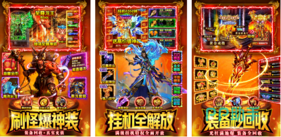采用复古的三职业为主要核心,重温起美好的传奇荣耀和曾经的热血内心,这些职业都各有千秋,有不同的定位属性,起初大家只是孤身一人,所有的炫酷装备都靠打,有自动回收以及自动捡拾的操控按钮,如果想要成功变强,那么只有打怪才是最根本的途径。还可随时和自己的好兄弟共同集结再次征战沙场。