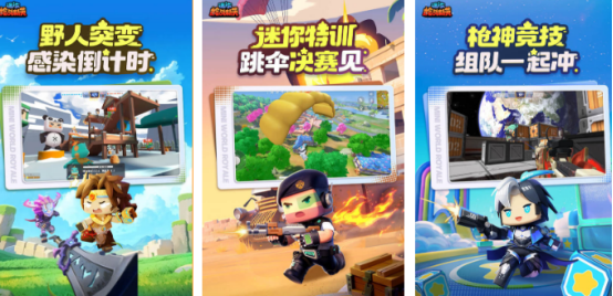 根据迷你ip正版授权的q版像素射击风格,游戏有经典的方块人造型,角色设计呆萌又可爱,融合了像素风格以及卡通元素,与传统的写实风相比也形成鲜明对比。完整的团队竞技模式,包括5v5枪战对决以及决狙击对决,不同玩家主要的目标便是率先达到相应的指定积分,就能够成功获胜。也有相应的特殊玩法,全方位增加趣味性和策略性。