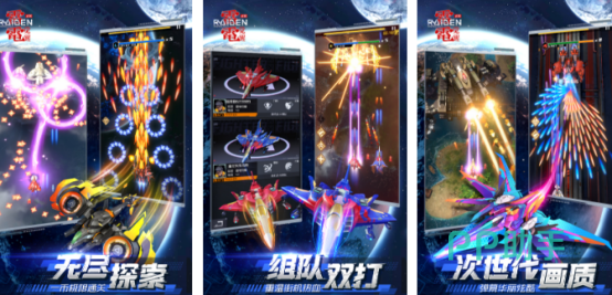 高度还原经典雷电的种种特色ip,作为街机游戏的起源之作,将一币一命以及经典的双人模式再次还原,同时还有红蓝战机设计,让众多老玩家轻松重温90年代街机游戏厅当中的热血与挑战。当前游戏画风进行全方位提升,采用先进的引擎所设计,呈现出相当独特的科幻美术风格,带着战机在宇宙当中探索战斗时,可以享受逼真的视觉盛宴。
