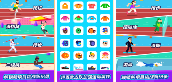 因为如果你对运动项目很感兴趣,不妨选择此作品,加入自行车、跑步、跳远等一系列运动模式,采用完整的卡通风格,角色动作造型相当夸张,针对于不同项目设置了独特的控制方式,跑步、标枪蓄力投掷等,这些简单易上手。每次完成关卡以及运动项目之后,有机会解锁更多的皮肤。