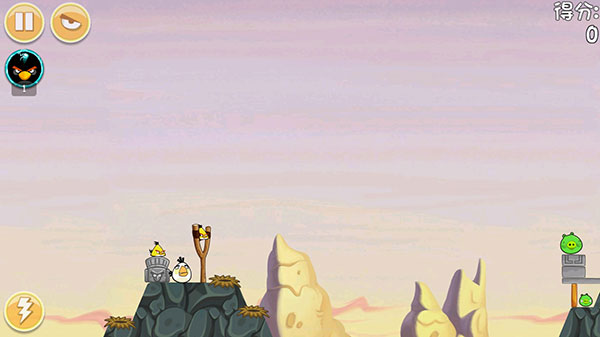 《愤怒的小鸟时空之旅》每个时空篇章中,游戏都搭载了专属的地图和挑战模式,在这,你将运用着各类萌动四射的小鸟,辗转于侏罗纪、未来的时空篇章中,与偷鸟蛋的绿皮猪进行生死大战。在进行拉拽弹弓操作的同时,你还可以运用药水以及能量道具,增加小鸟的冲击速度和伤害。