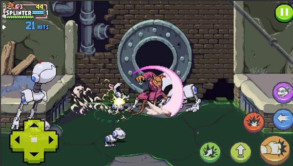 《忍者神龟 turtles》和初代版本的玩法上是如出一辙的,更神还原了地图中的铁链、以及可推动的水管、箱子等障碍,忍者会更是标配出了威力巨大,可以适应不同作战对手的特殊技和必杀技,在进行关卡跑图中,操作忍者龟进行冲刺跳跃,还可以实现大跳、空中连跳等效果。