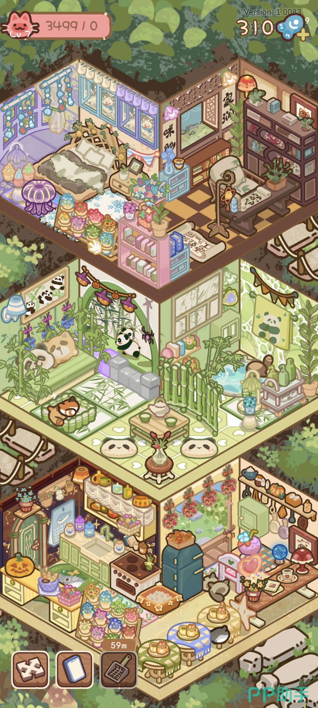 商店里面家具的风格样式和布局也是多种多样,玩家可以根据自己的眼光和喜好来进行自由的挑选,里面还有动态的装饰和静态的装饰,其中动态的装饰含有会动的沙滩地板和熊猫的墙纸,当玩家需要兑换进入商店之后,会看到连琳琅满目的各种各样的家具,有些家具还需要一块一块的购买,才能够拼装出整个的家具,倘若玩家购买之后可以点击右下角的按键便可退出商店,倘若商店里所含的物品不能够满足玩家的需要,那么就可以刷新商店,在刷新商店的时候,可能会消耗一些资源,因此玩家在游戏当中要尽量多多的收集资源。