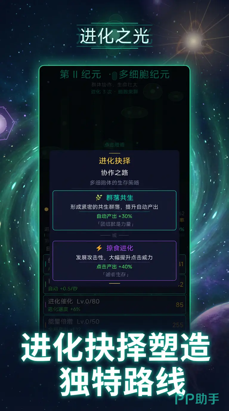 综合来看,《进化之光》适合对天体物理学、古生物学及演化生物学有基础认知兴趣的用户。它将抽象的科学概念转化为可交互进程:从单细胞到智慧文明的跃迁不再停留于教科书描述,而是通过实时演算、参数调节与因果验证,让玩家在操作中理解自然选择压力、遗传漂变效应与协同进化关系。这种兼具知识密度与玩法深度的设计,使其成为科普向策略游戏中的代表性作品。