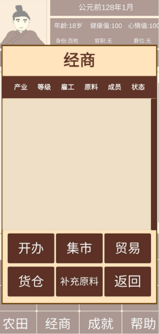 文字经营手游模拟人生玩法为主,以西汉时期为题材,最初你仅是汉朝的平民任意选择适合自己的发展方向,比如务农经商,也可以入朝为官,最终称王称帝,独特的人生轨迹全部都由你来决策,出色的历史制度,还原特色玩法,通过购买爵位的方式来提升社会地位。