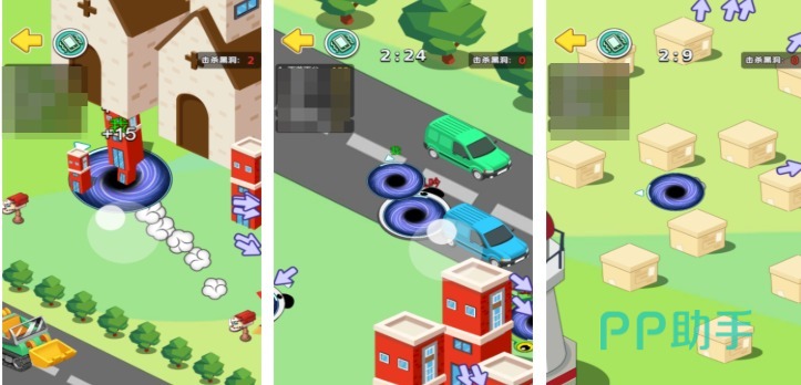 《全民黑洞大战》主打四人协作或对抗的轻量级吞噬体验。游戏采用上帝视角,操作响应灵敏,支持多种黑洞外观皮肤切换,视觉表现力较强。每局地图随机生成,包含森林、工厂、港口等差异化环境,确保重复游玩的新鲜感。吞噬过程中体型增长直观可见,最终胜出者头顶皇冠特效,强化成就感。互动性强、上手门槛低,适合碎片时间快速开局。