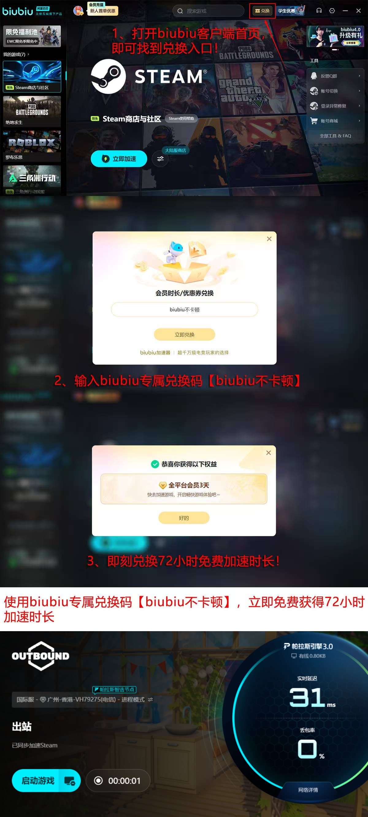 为验证实际效能,研发团队联合职业电竞选手开展实测验证,邀请PUBG全球冠军左梓轩作为技术体验官全程参与压力测试。测试数据显示,在复杂网络条件下,启用biubiu后平均端到端延迟下降约42%,丢包率稳定控制在0.3%以内,会话保持成功率提升至99.97%。新注册用户可享24小时全功能免费加速服务;平台同步开放通用口令“biubiu不卡顿”,所有用户均可无门槛兑换3天额外加速时长,覆盖出站游戏及其他主流联机作品。
