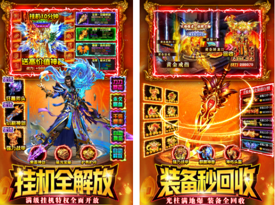 这是非常好玩,以经典的复古三职业玩法为主,不仅能重温经典,感受热血以及荣耀。除此之外,所有的装备全靠爆,而且还能通过打怪的方式让自己也变大变强。如果并没有太多时间的话,可以通过挂机的这一种玩法,释放双手,也能利用刷怪的方式获得神装,所有的装备才能够进行自动回收。
