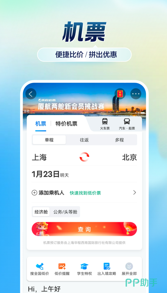 覆盖机票、酒店、火车票、租车、景点门票及出境签证等全链路旅行服务,支持行程智能规划与多维度比价。其供应链整合能力突出,直连大量航司与铁路官方接口,在同等服务标准下常具备价格竞争力。平台还提供实时价格趋势提醒、退改签政策透明化展示及24小时客服响应,适合对行程确定性与服务保障要求较高的用户。