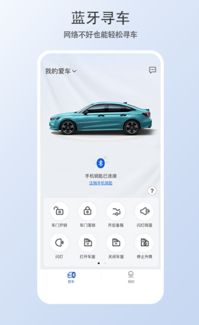 聚焦数字钥匙场景,采用国密SM4加密算法保障通信安全,支持多设备授权管理与临时权限分发。除基础的无感开锁、远程寻车外,创新加入离线蓝牙近场唤醒机制:在无蜂窝网络或GPS信号弱区域(如地下车库),仍可通过手机蓝牙直连车辆执行定位与鸣笛提示,有效提升找车成功率与使用容错率。