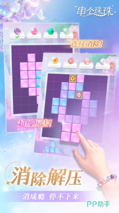 游戏中全部50多种串珠均无需付费获取,全部依赖玩家逻辑思维与操作技巧解锁。关键机制融合俄罗斯方块式消除玩法——玩家需在限定区域内滑动、旋转并消除指定数量的水晶方块,达成目标后即可开启宝盒,随机获得新珠种或稀有配饰,真正实现“用脑力换材料”。