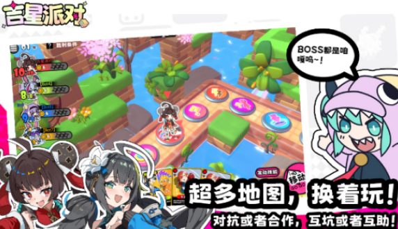 支持4名玩家同时联机对战,采用二次元的美术风格所渲染,将棋盘移动以及骰子驱动等多样化的元素全部结合,从玩法上来看又和大富翁特别相似。此游戏更考验的就是大家的运气以及策略,比如在pve合作对战中,必须要通过共同组队协作的方式完成关卡的挑战,每局只需要短短10分钟就可以轻松畅玩,让欢乐无限制。