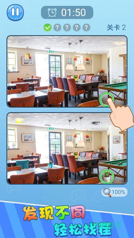 收录超千组主题图片,涵盖美食摄影、自然风光、城市建筑等多元场景。找茬逻辑突破传统轮廓差异,引入色彩偏差、镜像翻转、光影角度变化等高阶变量。每次完成挑战后生成三维评估报告(用时、准确率、平均注视点停留时长),内置放大镜与线索提示道具,支持个性化训练节奏调控。