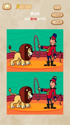 采用双图并置对比形式,所有素材均采用高精度卡通插画,找茬点分布涵盖形状微调、局部着色差异、元素位移及透明度变化等类型。关卡递进过程中,图像复杂度指数级上升,隐匿型差异点占比持续提高,同步训练视觉搜索效率与细节保持能力。