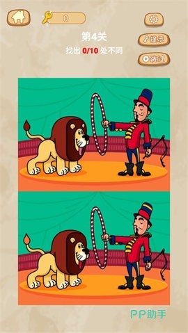 基于差异检测原理开发,所有关卡图像均采用原创卡通素材,经专业眼科医师参与设计:找茬点分布符合Fovea中心凹视觉特性,早期关卡侧重明暗对比差异,中后期引入纹理密度变化、边缘模糊度梯度及微小位移(像素级偏移≤3px)。难度曲线严格遵循Weber-Fechner定律,确保每次升级带来可感知但不过载的视觉负荷。