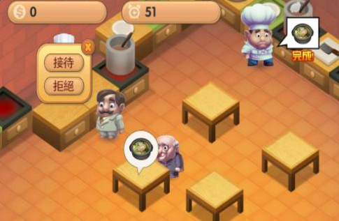 玩家以协作方式经营虚拟餐厅,一人负责食材处理与烹饪,另一人承担点单、上菜与顾客接待任务。游戏提供龙虾、牛肉、鸡蛋等多样化食材及完整厨具体系,支持中西餐制作。订单限时完成机制强化时间管理要求,顾客耐心值随等待时间递减,超时将直接流失客源,考验双方配合效率与操作协同性。