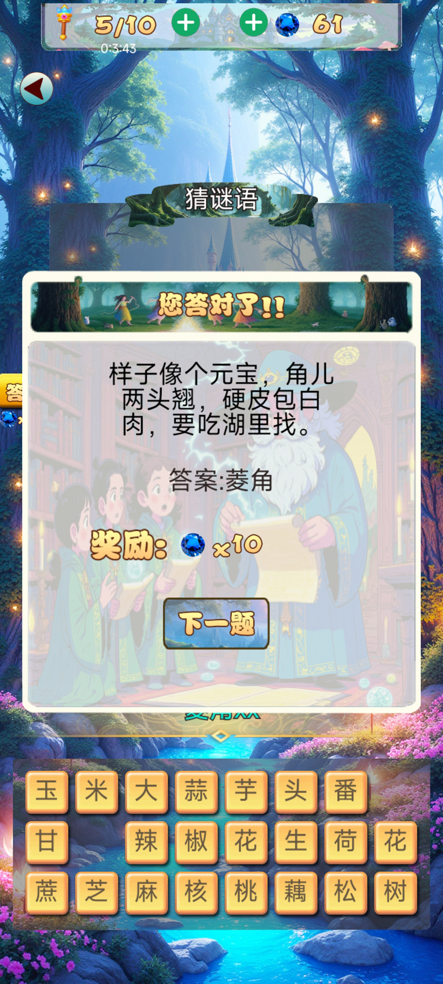 一款专注果蔬认知训练的轻量级答题游戏。玩家需在倒计时内快速判断屏幕所展示图像属于水果或蔬菜类别,答对延续挑战,答错扣除复活机会。题图由完整外观逐步过渡至切面结构、表皮纹理等细节特征,难度逐层递进。内置“果蔬百科”模块,涵盖上百种常见果蔬的产地、营养成分与食用建议等内容,具备儿童早期认知启蒙功能。