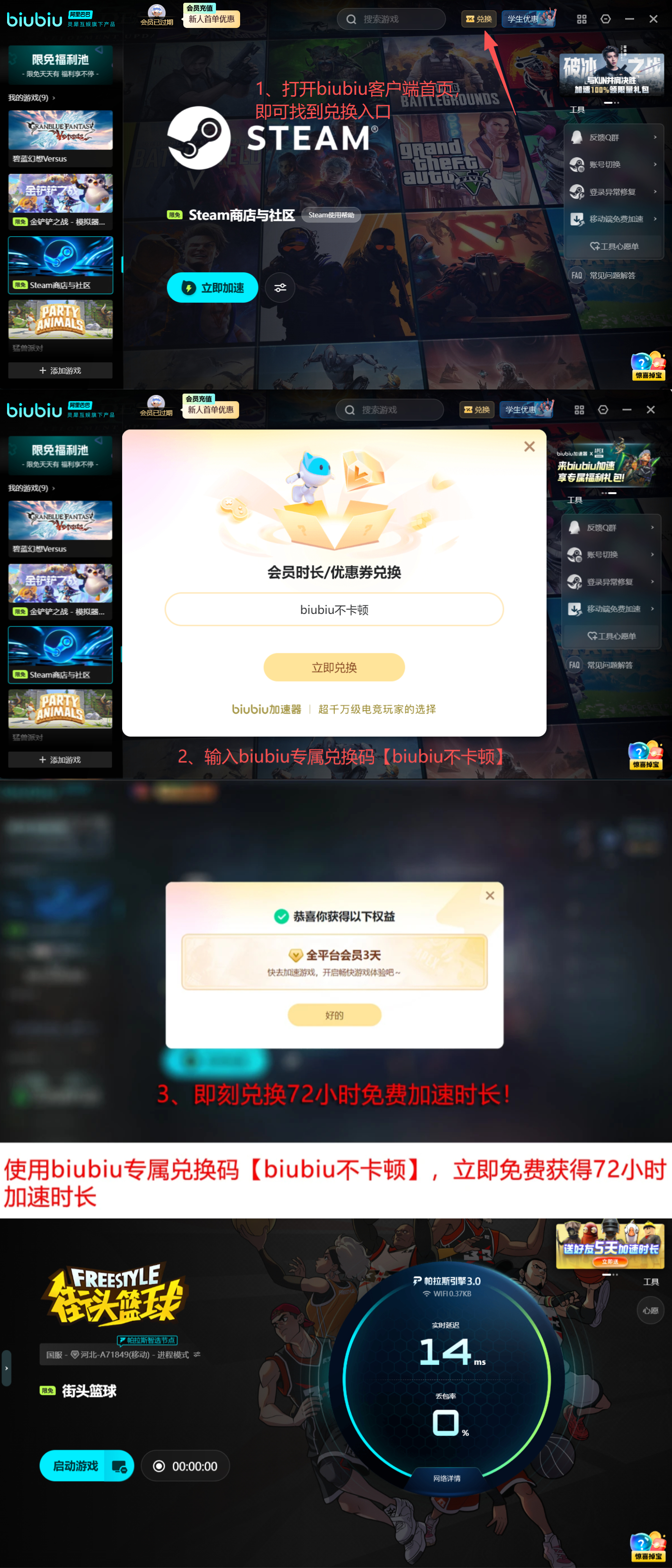 立即注册,开启高性能网络体验!新用户完成账号注册后,可直接领取24小时无限制免费加速权益;叠加使用专属口令 【biubiu不卡顿】,还可额外获得72小时高品质加速服务。两项福利叠加,新用户总计享有96小时完整试用周期。