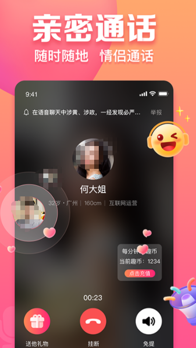精准寻友无纷扰,免费随心赴良宵,平台对用户隐私的这一块把控严格,采用信息加密存储模块,用户可自主设置资料可见范围,信息安全有保障,让交友更安心,软件根据用户的个人偏好、兴趣爱好、择偶标准等进行精准匹配,减少无效社交,快速推荐符合喜好的聊天对象,软件支持文字、语音、视频多种互动形式,用户可按照自己的习惯去交流,也能加入兴趣群组,结识更多同好。