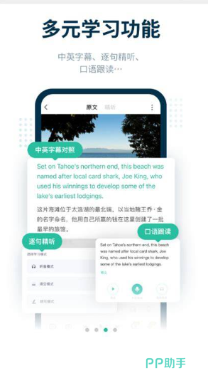 专项训练强针对性,多端同步无界限,它专注听力与口语专项提升,针对性还是比较强的,还支持多个端口同步运行,学习没太多设备限制。核心采用逐句精听、原声跟读模式,一分钟就能快速开启练习,完美适配碎片化时间。听力素材均取自真题与优质内容,听不懂可实时查看提示,还能通过关键词听写来进行自测。