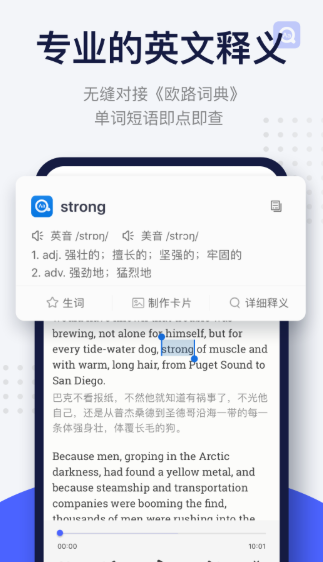 听读并行提能力,轻学无压伴朝夕,学生党备考英语需要听力练习工具,上班族想提升英语能力也找到合适的每日英语听力app,它们都有自己的特性以及功能,符合不同人的一个选择需求,不用太多繁琐复杂的操作,通过有空的时间可以让大家的整体的能力提升一个阶层,功能也比较全面,帮助大家可以直接找到符合要求的那款。