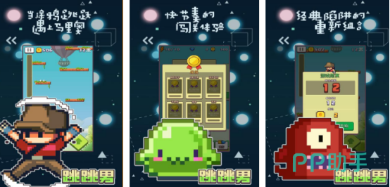 控制着像素小男孩在不同的环境当中奔跑跳跃,进入游戏之后,像素画风与我们熟悉的我的世界比较相似,玩家通过跳跃不断攀升,其中有超级马里奥类似的关卡设定,需完成快节奏闯关,精准控制男孩的步伐,才能躲避陷阱,还有很多道具等你来使用。