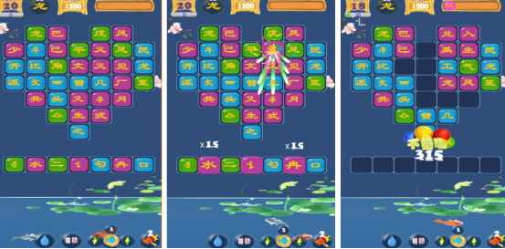 与市面上的文字类游戏完全不同,在随机生成的汉字网格当中,通过点击或者划线的方式选择组合的偏旁或者部首,完成汉字或词语消除,不同汉字在颜色方面是有所差异的,最终形成极高的辨识度,整体的规格较为简单,设计富有深度。