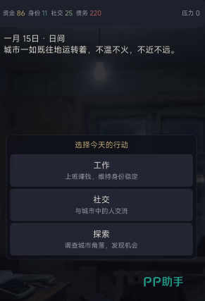 《残留之城》是一款以高难度与强叙事驱动为核心的生存模拟游戏。玩家将置身于一座充满未知与压力的现代都市中,直面求职困境、租金压力等现实向生存挑战。每一次对话、每一份工作申请、每一笔支出决策,都将生成不可逆的人生轨迹——这些选择不会立刻显现结果,却会悄然重塑角色关系、经济状况、技能成长乃至城市探索权限。