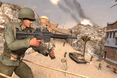 《二战FPS射手》战壕、军事堡垒,以精精细刻的地图设计完美彰显了二战时期的风采,游戏涵盖了军事训练模板,能够让玩家们熟能生巧的掌握不同的载具和武器的使用操作,你可以在第一人称视角的加持下以身代入成为一名士兵,去参与到设定的各种刺激绝伦的战斗任务之中,尤其是突如其来的敌人援助的加入,更加考验着玩家们作战临场感的发挥。