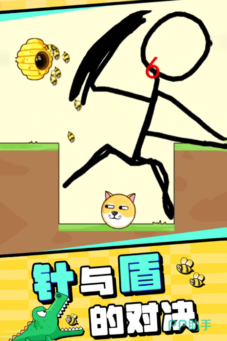 这款游戏为你设计一只滑稽的狗头,你需要划一笔线护住它,不被蜜蜂咬不落水淹死不被炸死,这无疑需要你观察蜜蜂巢穴的悬挂位置,湍急河流、炸弹的所处方位,审时度势划线。游戏一关难过一关,关卡的布局也截然不同,给你十足的烧脑既视感。游戏没有规定时间,给了你充足的思考时间来破局。