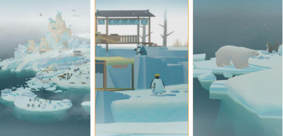 本作构建于极地生态世界观之上,融合基地建设、资源采集、生物图鉴收集与轻度抽卡系统。初始岛屿面积有限,环境荒芜,玩家需逐步扩建栖息地、升级保温设施、铺设补给路线。离线挂机期间仍可持续产出爱心、金币等基础资源。通过卡池抽取可解锁雪狐、北极熊等稀有极地生物,每种生物具备独立互动动画与属性加成,增强策略深度与收集乐趣。