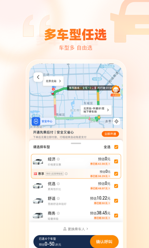 国内汽车行业三大央企联手打造的网约车平台,采用的是B2C模式,车辆都是自营或统一管理的租赁车,司机也均为公司全职员工,提供快享、惠享以及代驾等服务,司机端应用为车机系统内置,同时配有人脸识别、实时监控等安全预警功能。
