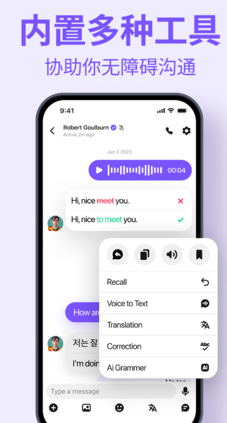 隔山隔水隔着语言,真心交流更可以说是难上难,百余种语言无缝互通,都能即刻精准转译,你的心意无需迁就语种,跨屏畅聊全程零阻。,大家还可以跟其他国家的人去直接进行沟通交流,不需要担心沟通出现任何障碍。它比较适合商务的沟通以及跨国的交流操作也很简单,弱网环境也能保持基础沟通,满足日常跨国联系的需要,语言隔阂全打破,大家也可以在这个过程里面让自己的沟通能力得到提升。