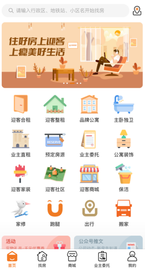 智能租房选迎客,全流程保障更稳妥,它支持3D实景看房,足不出户就能看清房间细节、家具配置,还能提前线上预订锁定房源,平台配备一对一专属管家,经过专业培训,还能提供一键报修、保洁服务和智能门锁配套服务,每套房源都配备智能密码锁,保障租客居住安全,线上签约、在线预订功能齐全,让租房更便捷更安全,全流程保障更可靠,管家服务暖人心,安心入住乐陶陶。