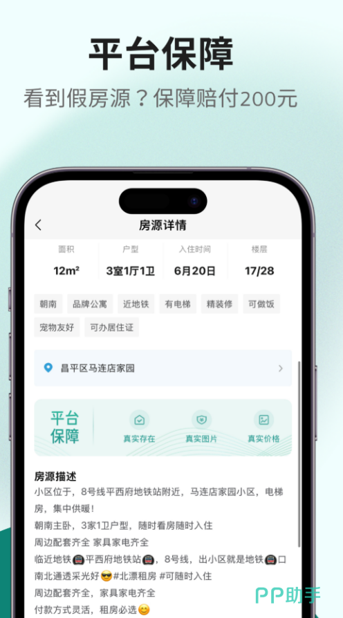 真实房源遍四方,专业服务暖人心,《贝壳找房》整合了众多房产中介和开发商资源,不仅有租房板块,支持地图找房、地铁找房,还能VR实景看房,不用跑现场就能看清房间细节、户型格局,平台对房源审核严格,每套房源都经过实地核验,标注真实面积、价格和配套,杜绝虚假信息,真实房源无套路,租房之路更平坦。
