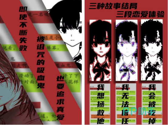 游戏当中讲述的就是网瘾少女与吸血鬼展开恋爱冒险,除了游戏当中的画面给人一种非常独特的感觉,除此之外,也可以开启三段不同的恋爱体验,有三种不一样的故事结局。化身为游戏当中的女主角以后,通过网恋的方式遇到吸血鬼男友,为了能够追求真爱,即使面临被诅咒的吸血鬼角色,也可以通过自己的选择获得真爱。