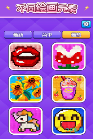 素材库规模庞大,日更机制保障内容新鲜度,所用底稿均由专业像素画师原创绘制,构图严谨、比例协调。操作流程极简:先选取目标色号,再依数字编号逐格填充,零学习成本。UI界面采用模块化布局,色彩面板、画布视图、操作提示分区明确,整体视觉呈现工整有序,符合大众审美习惯。