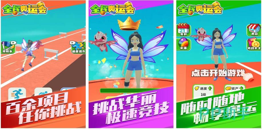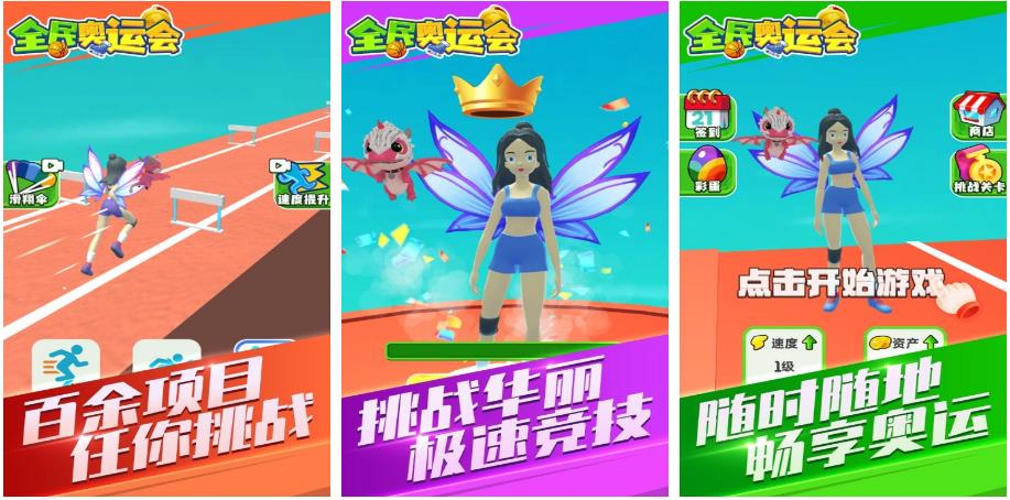 这同样是一款以奥运会赛事为主题的游戏,它的核心玩法是通过滑动和点击以及连打屏幕等操作,来完成游戏当中提供的各种运动,比如跑步、滑雪、游泳、击剑和。和骑行等等。游戏中的奥运项目种类非常丰富,操作也很简单,还集合了收集与成长这两大元素,甚至还能在离线的时候有所收益,越玩越有趣。