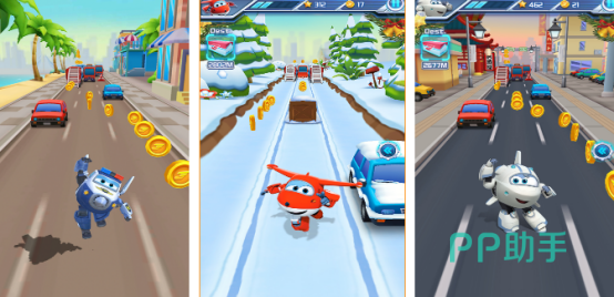 有5位可爱的超级飞侠角色,可任意选择,还原动画当中的经典造型和场景语音系统,为玩家带来熟悉的沉浸体验,游戏画风可爱又温暖,整体的规则更是简单易上手,从适合儿童等不同的年龄段,采用经典的横版跑酷模式,玩家需要操控角色躲避障碍,通过跳跃滑行的方式规避危险。