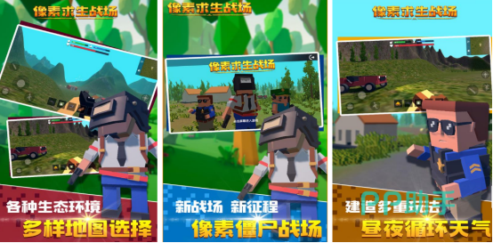 以像素风为题材的tps射击手游采用无规则作战模式,在超大的吃鸡战场当中收集装备消灭敌人,最终成功生存,玩家可以选择单人模式,所有战场以及物体全部都采用3d手绘方块像素风构造而成,营造出别具一格的视觉体验。场景更是极其丰富,有城市废墟以及野外丛林等。