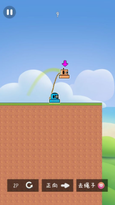 本作专为双人协作设计,全程仅需一部智能手机即可运行。两名角色由物理绳索连接,行动相互牵制:一方起跳时另一方会受力偏移,按压屏幕时长决定滞空时间,角色自动向前移动。通关关键在于节奏同步——任意一方操作失误都可能导致卡关。随着关卡推进,机关复杂度逐步提升,默契配合带来的流畅感与成就感也愈发明显。