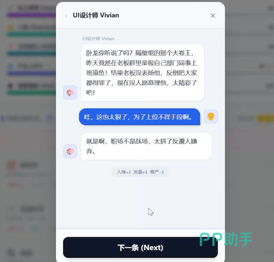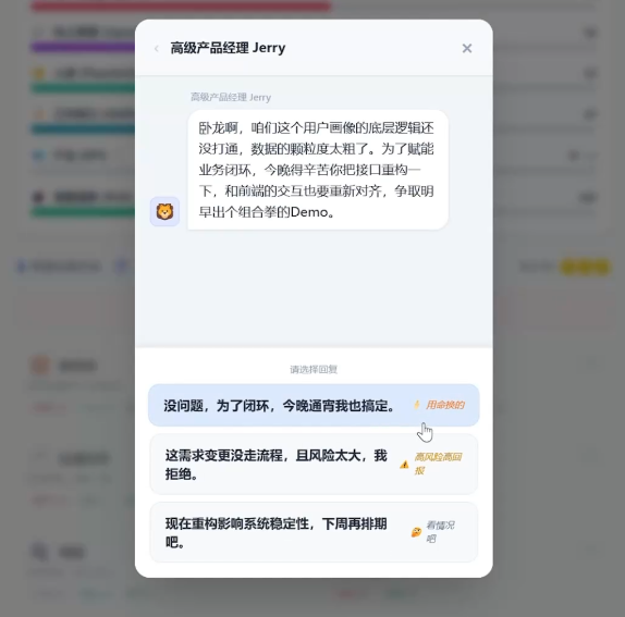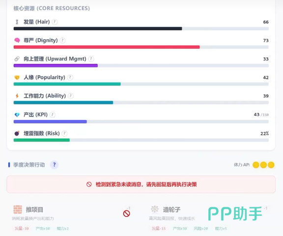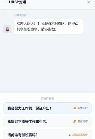 完成岗位选择后,系统将触发HR面试环节。玩家需在限定对话选项中做出判断——每个应答将动态影响“沟通力”“抗压值”“技术熟练度”等关键属性,部分选项虽短期提升某项能力,但可能同步削弱其他维度数值,考验玩家对长期发展节奏的预判能力。